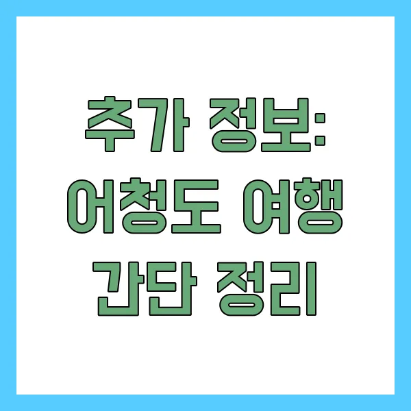 - 차량 선적 요금: 차량을 배에 싣고 어청도로 들어갈 경우, 별도의 차량 선적 요금이 부과됩니다. 차량 종류 및 크기에 따라 요금이 다르니, 미리 확인하시는 것이 좋습니다.