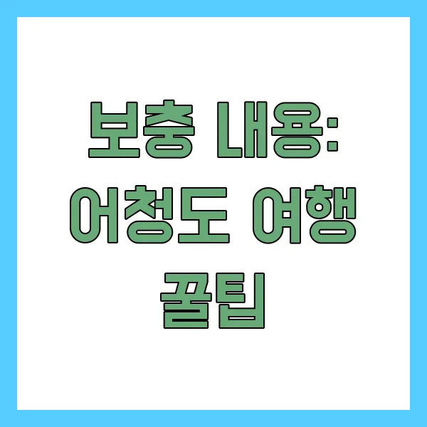 어청도, 정말 매력적인 섬이죠? 아름다운 자연과 다양한 즐길 거리가 가득한 어청도에서 잊지 못할 추억을 만들어 보세요! 배시간, 배편 요금, 예약 방법, 물때표까지 꼼꼼하게 확인하고 떠난다면 더욱 즐거운 여행이 될 거랍니다. 어청도 여행을 통해 일상에서 벗어나 힐링하는 시간을 가져보세요!