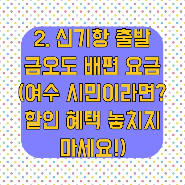 2. 신기항 출발 금오도 배편 요금 (여수 시민이라면? 할인 혜택 놓치지 마세요!)